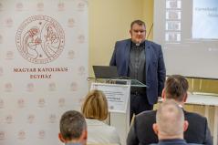 Szkoropádszky Péter, a Munkácsi Görögkatolikus Egyházmegyei Karitász igazgatója tájékoztatást adott a háború kitörése óta végzett humanitárius szolgálatról. Elmondta, hogy a szervezet jelenleg több száz érintett családdal áll kapcsolatban, akik komplex támogatásban részesülnek: az anyagi segítségnyújtás mellett mentális, pszichológiai és jogi támogatást is biztosítanak számukra, különös figyelmet fordítva az eltűnt katonák hozzátartozóira. Hozzátette, hogy a nyári időszakban szervezett programok és táborok a gyermekek és családok lelki regenerációját segítik, míg az idősek ellátását szeretetkonyhák működtetésével, valamint egy épülő beregszászi szociális központ létrehozásával támogatják. Mint fogalmazott: „Hálás szívvel gondolunk mindenkire, aki fogja a kezünket, és nem engedi el azoknak a családoknak a kezét, akik a háború terheit viselik.”