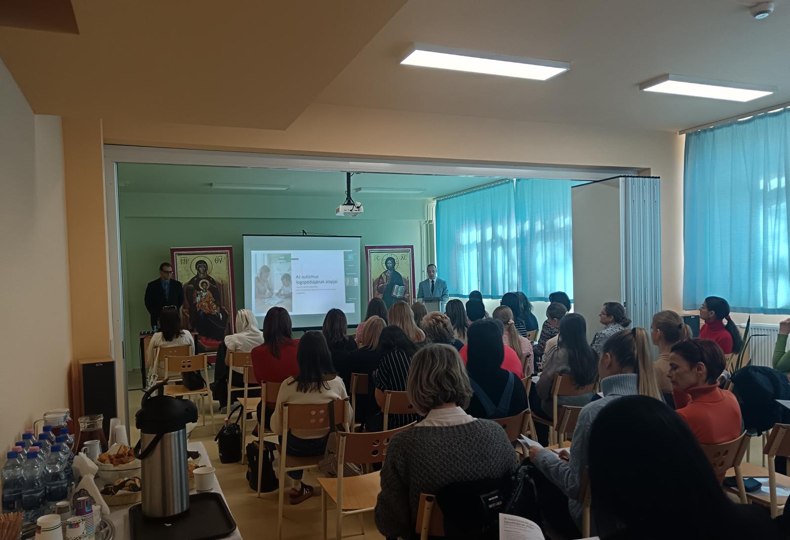 A jelenlévőket Vas Péter, a Szent Efrém nevét viselő intézmény igazgatója köszöntötte. Kiemelte: a képzés elméleti és gyakorlati síkon is kapaszkodót ad az autizmussal élő gyermekek szüleinek és a velük dolgozó pedagógusoknak a még hatékonyabb fejlesztéshez.
