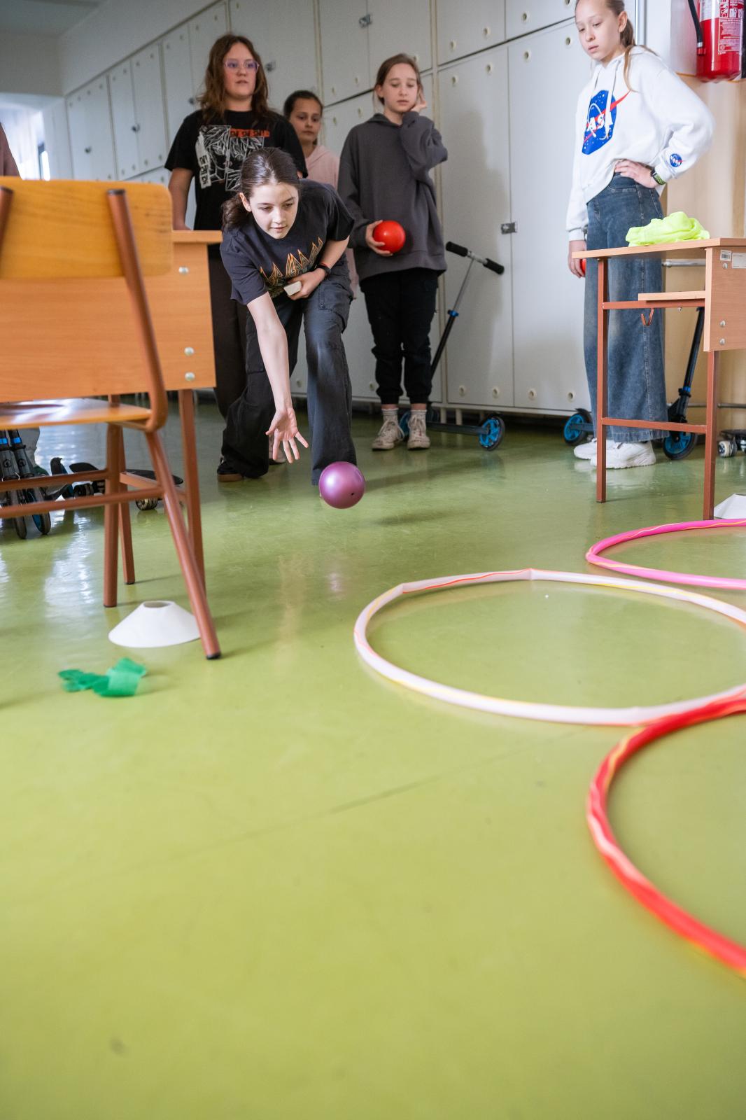 Az ügyességi feladatokban rollerre és gördeszkára pattantak a gyerekek, majd megmutatták, bánnak-e olyan jól a fúvócsővel, mint a mura indiánok. Jól jöttek a testnevelés órán szerzett ismeretek a karikák és kislabdák terelgetése során. Emellett QR-kódokra is vadásztak: mindegyik egy-egy tárgyat és egy kérdést rejtett: ki használta az adott eszközt?