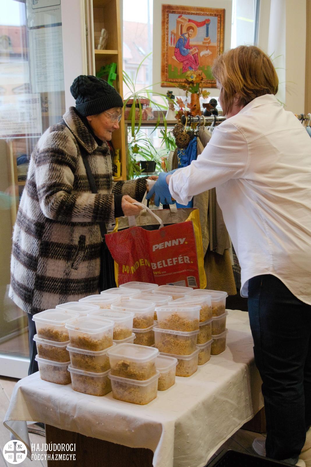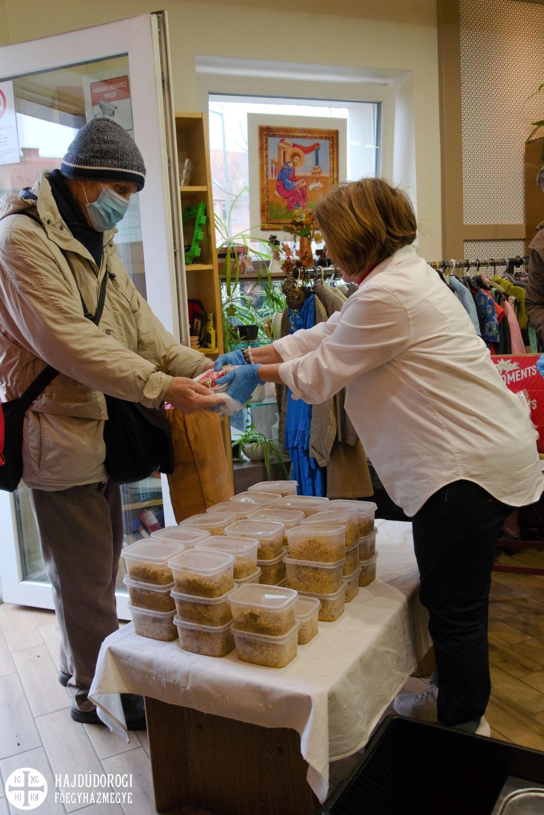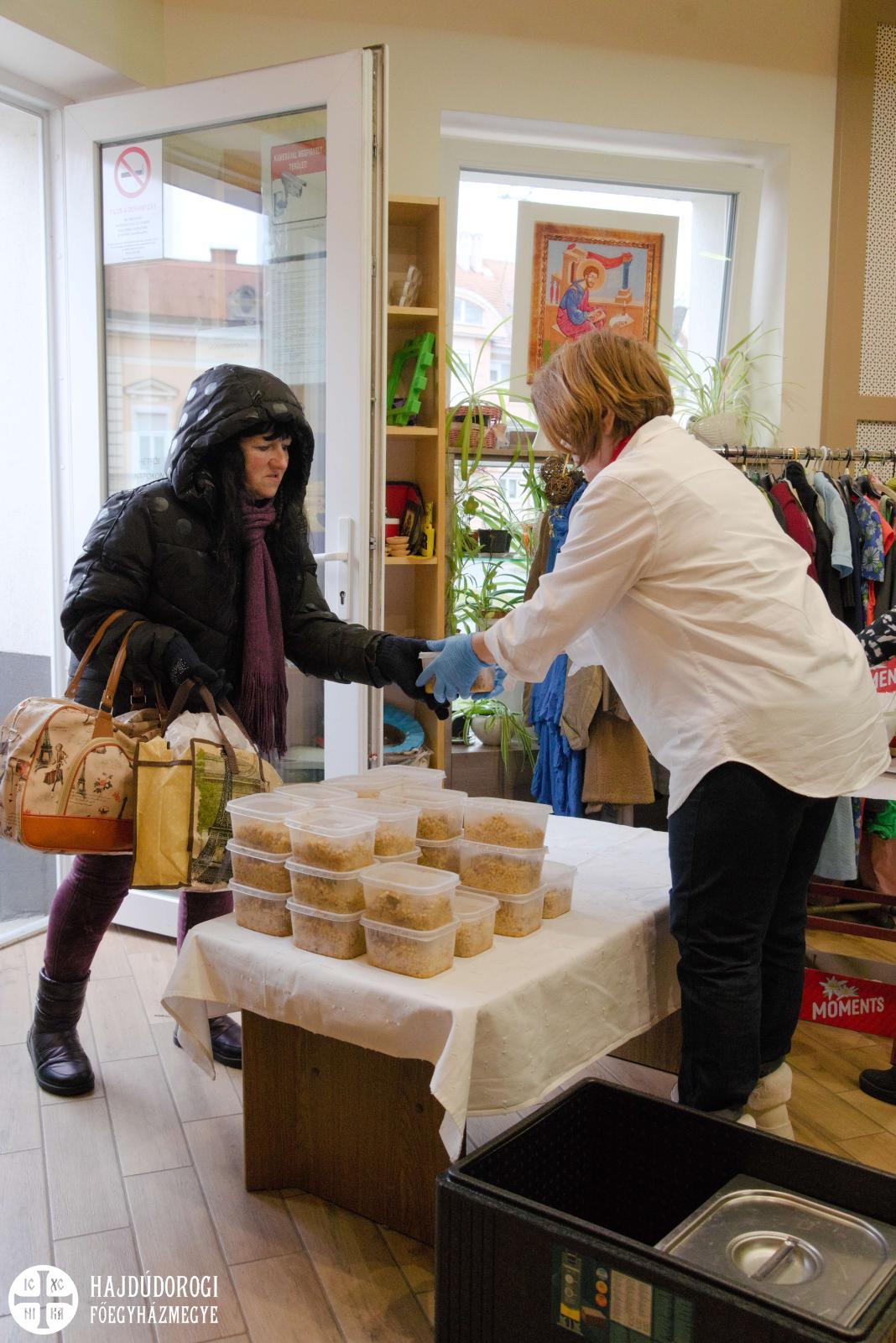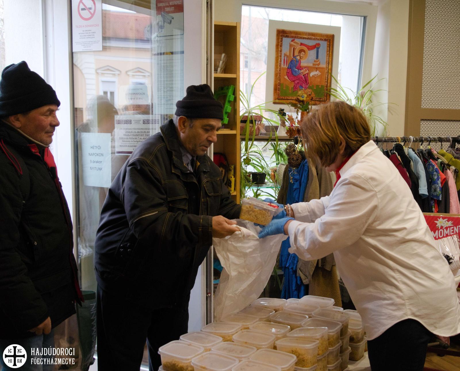 Ételosztás a Hajdúdorogi Főegyházmegyei Karitász Szolgáltatópontján