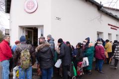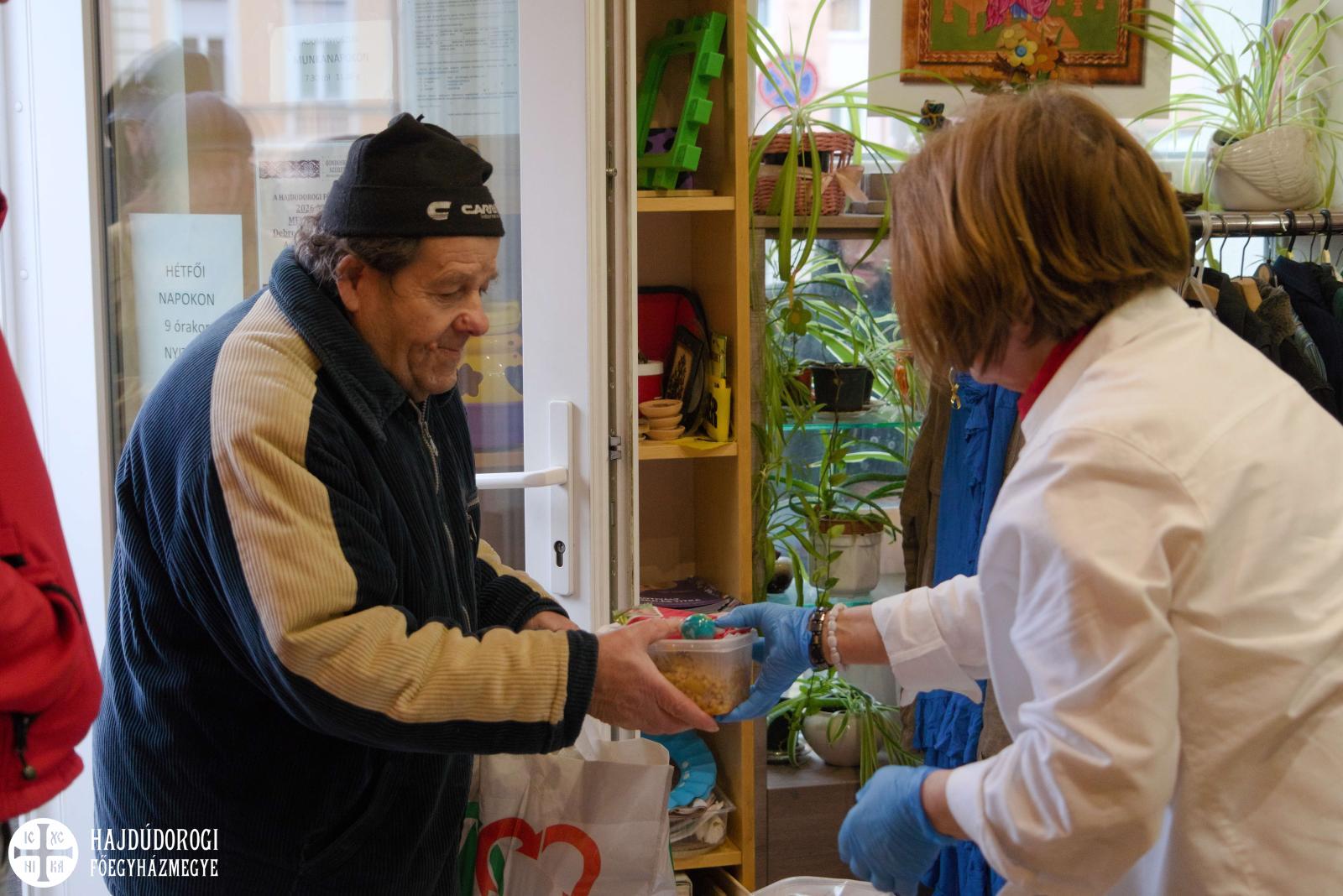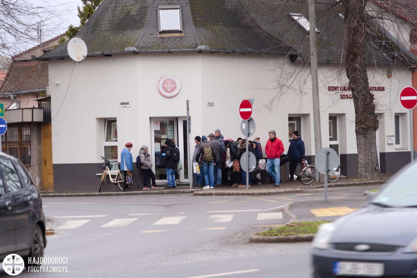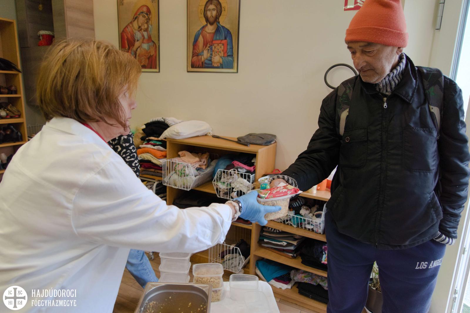 Ételosztás a Hajdúdorogi Főegyházmegyei Karitász Szolgáltatópontján