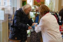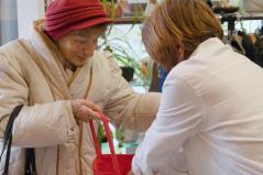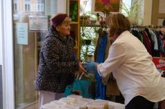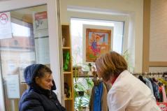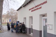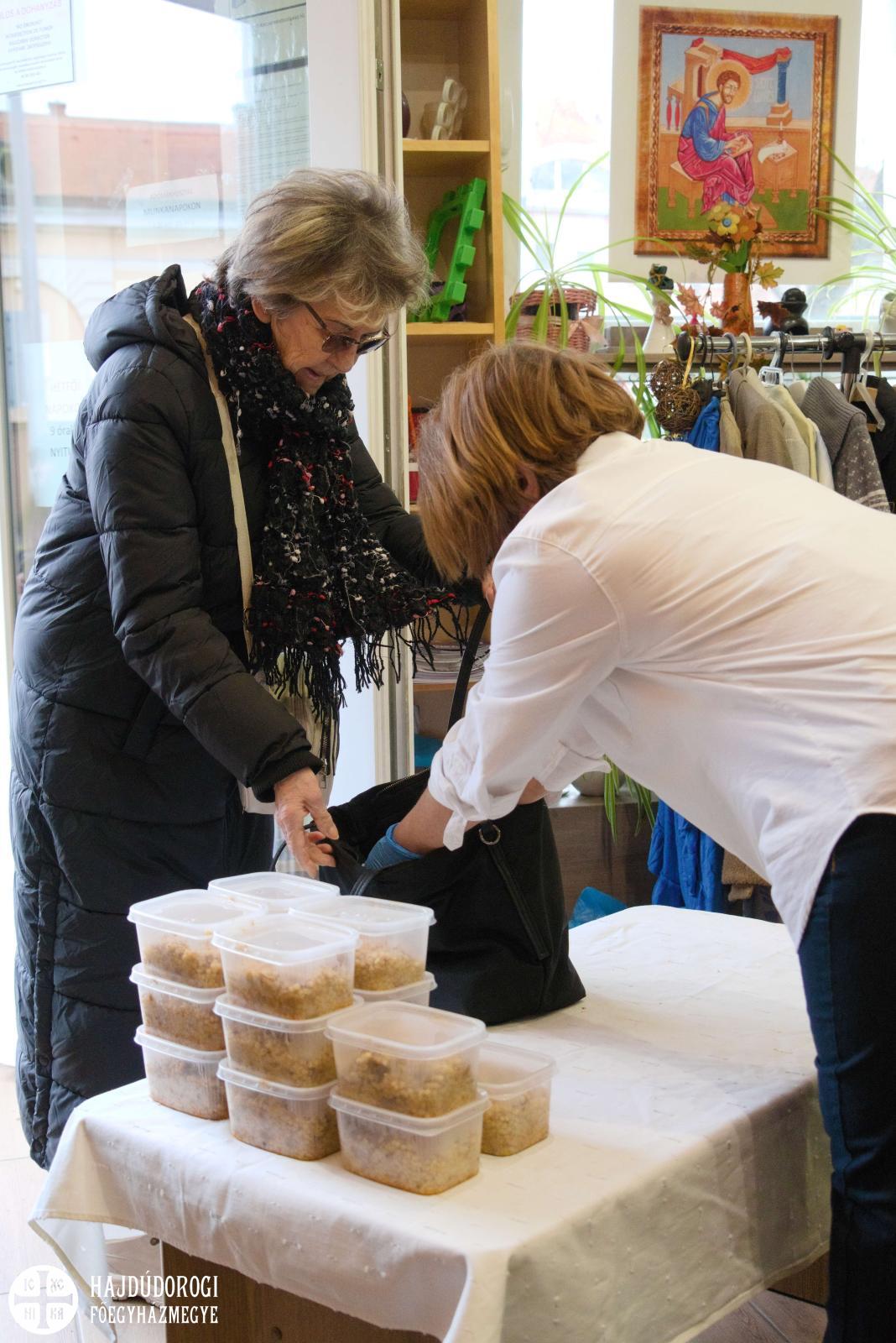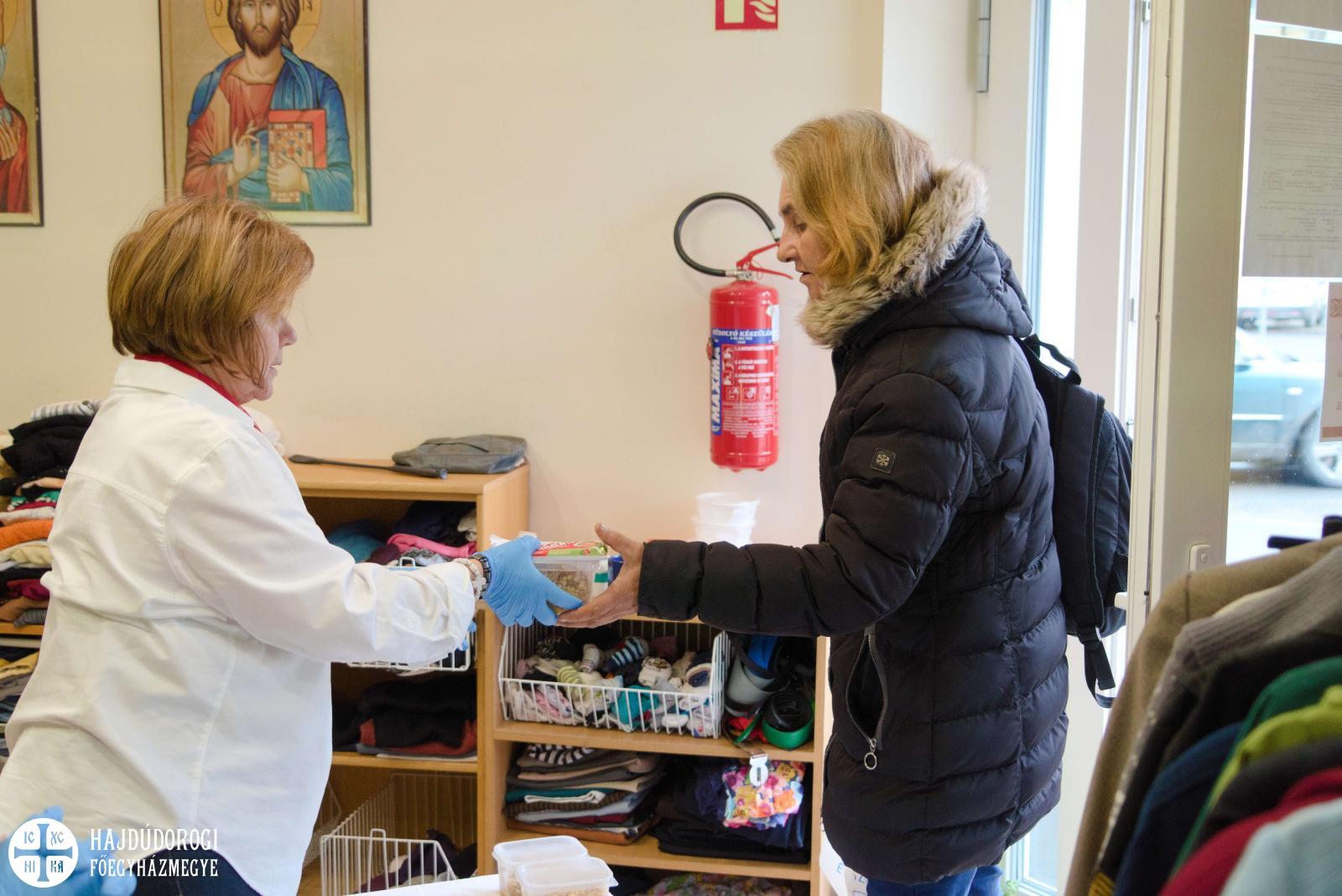 Már jóval az ételosztás megkezdése előtt is többen várakoztak a Hajdúdorogi Főegyházmegyei Karitász Szolgáltatópontja előtt. A rászorulók itt hétköznap délelőttönként ingyen kaphatnak ruhaneműt, lábbelit, ágyneműt vagy akár néhány apróságot kisgyermekük számára. Sokan láthatóan nem először fordultak meg az Attila téren lévő intézményben. Ilyen például Marika is. Marika fia több méter magasságból esett le 13 évvel ezelőtt, aminek következtében 75%-os egészségkárosodást szenvedett. Javulás a baleset óta nem történt és nem is várható. A most 35 éves férfi segítség nélkül közlekedni sem tud. Édesanyja gondozza őt. A szolgáltatópontból ágyneműt és ruhaneműt tud hazavinni számára.
