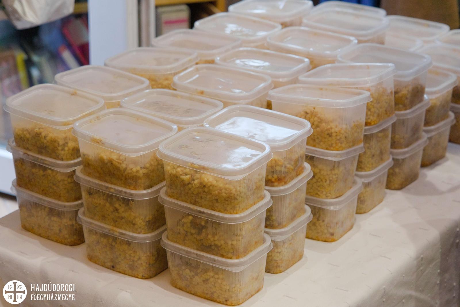 Aki eljött, egy bőséges adag tarhonyás húst, a karitász egyik munkatársának felajánlásából pedig egy ostyaszeletet kapott. Az étellel együtt a betegek imádságát is magával vihette mindenki.