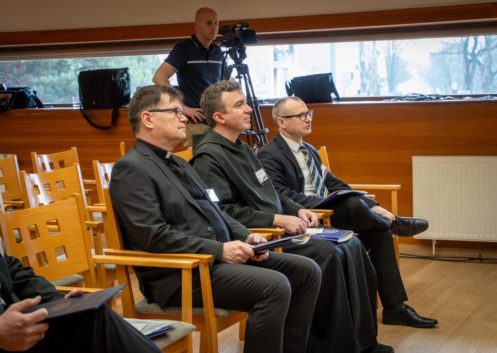 A kezdő imádság és Horváth Tamás atya, főiskolánk kánonjog tanára, bírósági helynök, a délelőtti szekció levezető elnöke köszöntője után Galambvári Péter, főiskolánk megbízott rektora, a konferencia főszervezője is üdvözölte a résztvevőket. Őt Szabó Péter egyetemi tanár, a Kánonjogi Posztgraduális Intézmény elnöke, főiskolánk rektorhelyettese, a konferencia ötletgazdájának bevezető gondolatai követték.