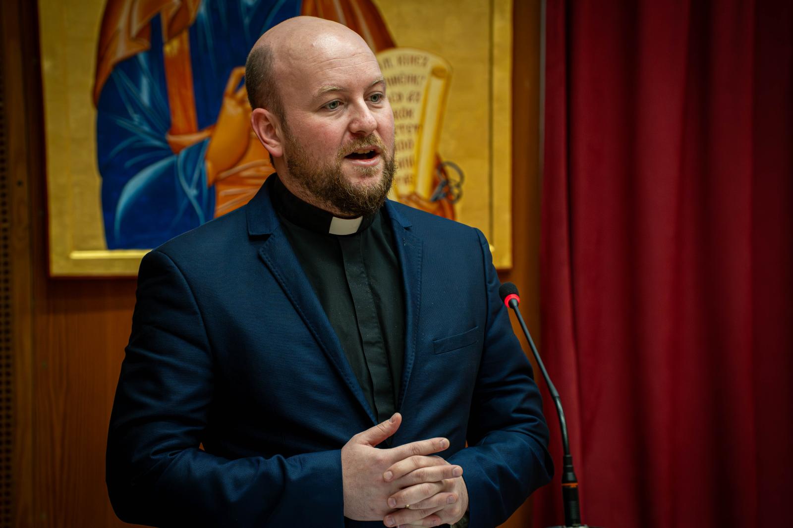 Ujházi Loránd, a Kánonjogi Posztgraduális Intézet tanszékvezető egyetemi tanára, a Nemzeti Közszolgálati Egyetem intézetvezetője, tudományos főmunkatársa előadásának címe A tábori püspökségtől a katonai ordinariátusig: hasonlóságok és eltérések volt.