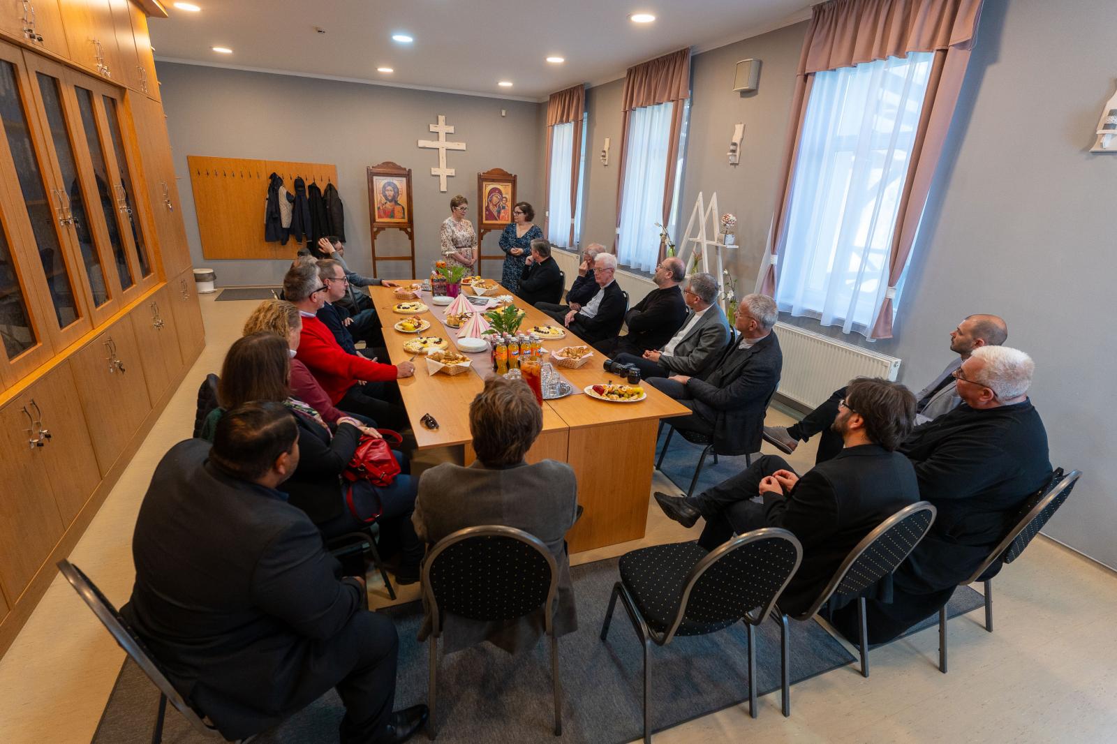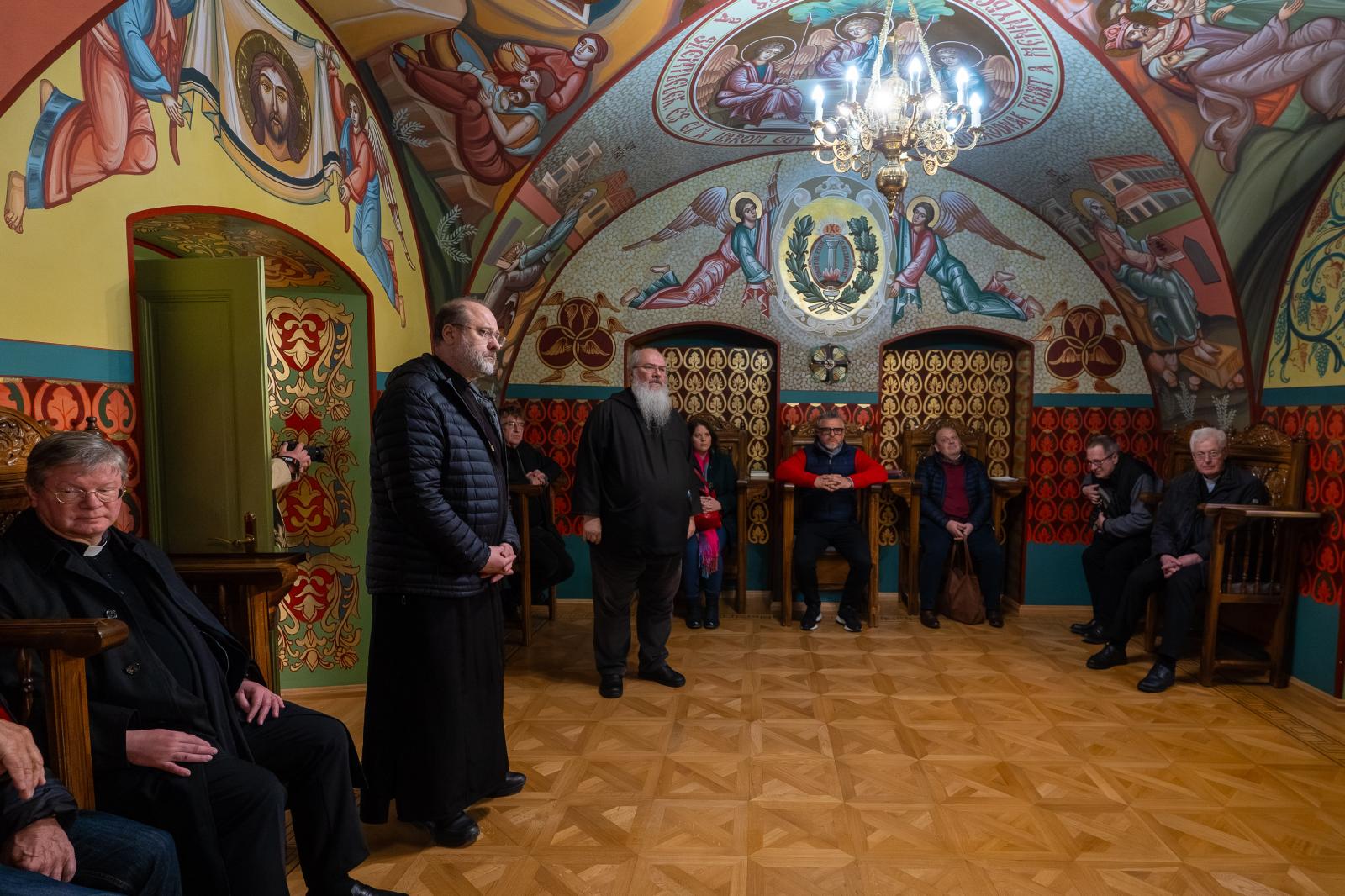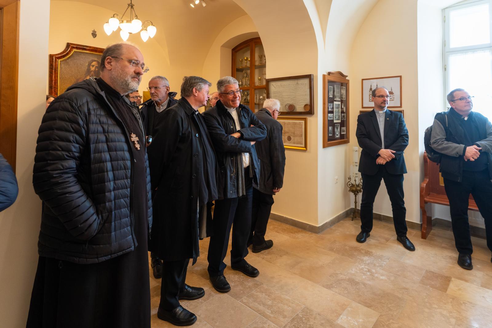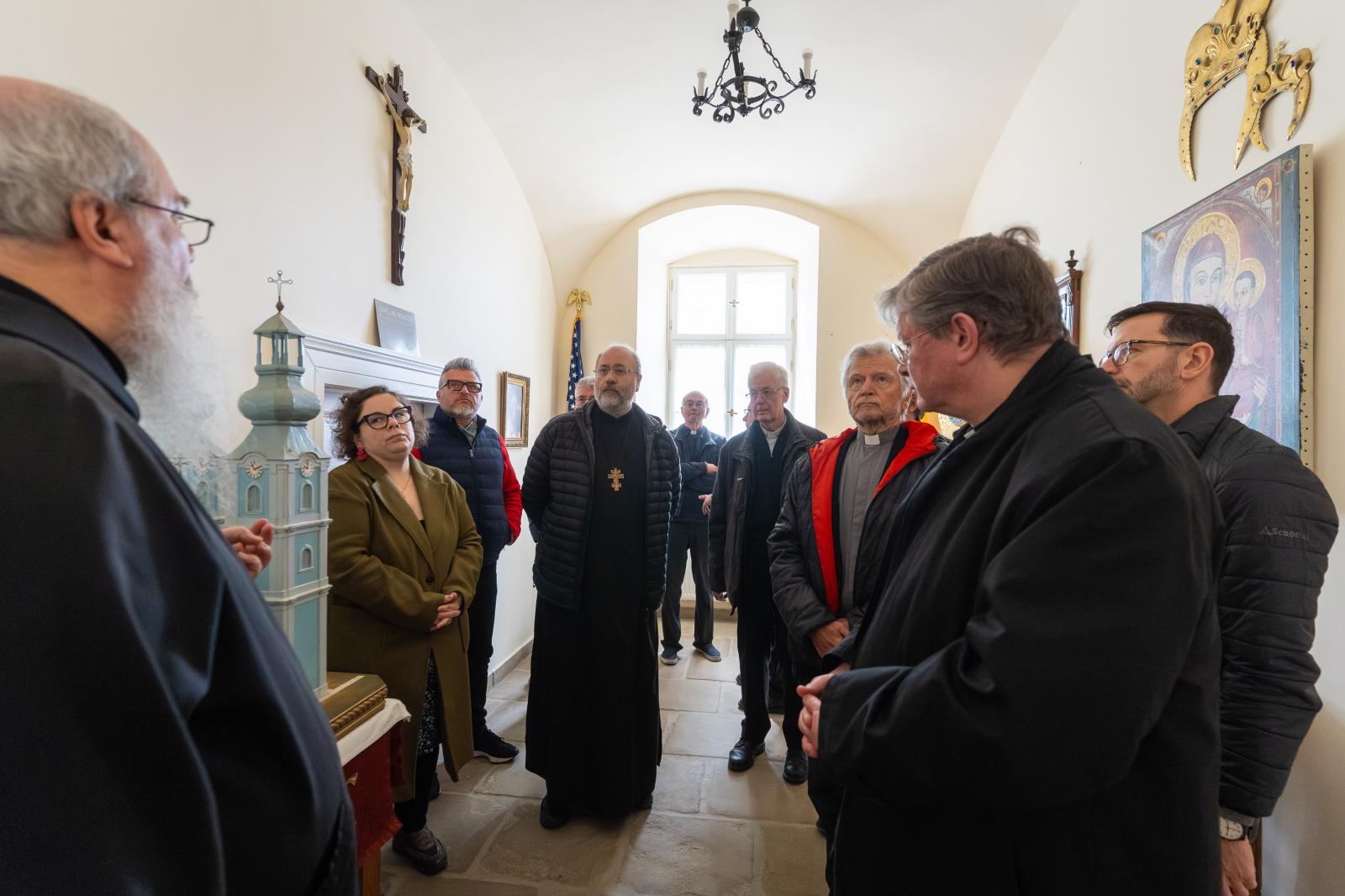 A hétfői megérkezést és az első liturgikus találkozást követően április 14-én, kedden mély szakmai és lelki programmal folytatódott a tizenhárom fős osztrák küldöttség látogatása. A delegáció rangját jelzi, hogy a csoport tagja volt a Bécsi Főegyházmegye érseki főhelynöke, valamint a pasztorációs hivatal vezetője is, akik mellett a Stephansdom dómkapitulárisai – a székesegyház ügyeit irányító testület tagjai –, a dóm igazgatója és a kincstár vezetője is Máriapócsra érkezett.