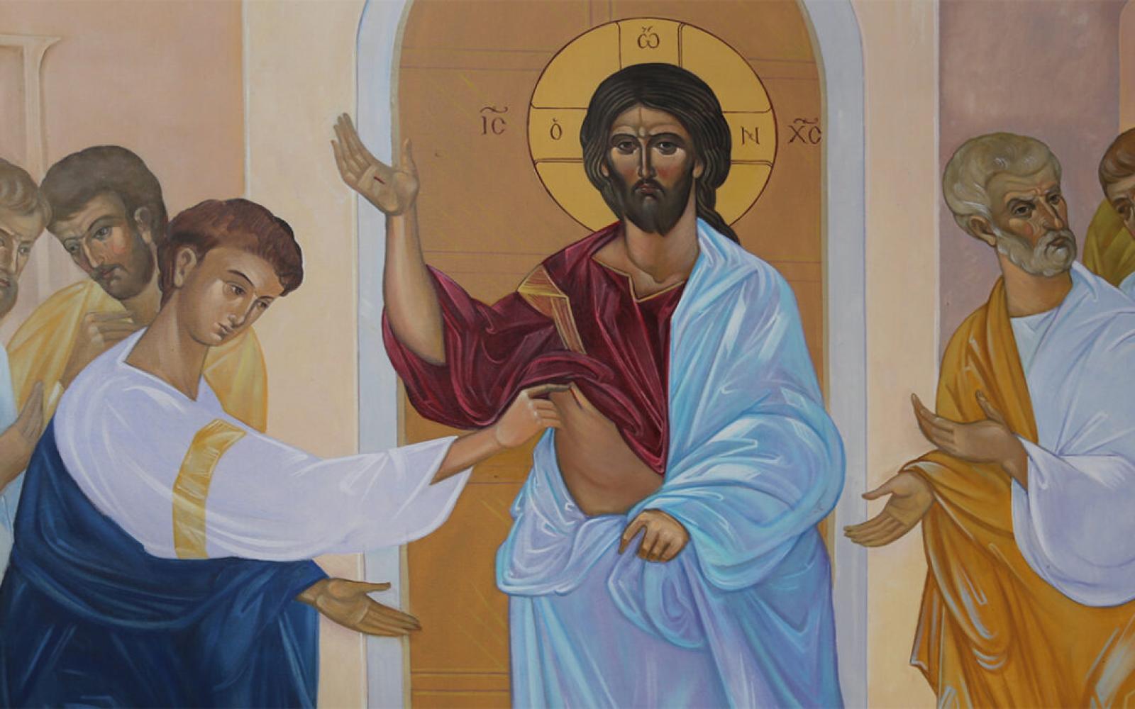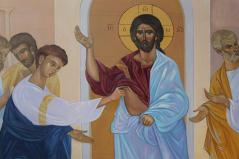 Keleti rítusunknak megfelelően a Tamás vasárnaphoz kapcsolódó előesti vecsernyét és utrenyét énekeljük el. Az erről szóló evangéliumi történet arra emlékeztet minket, hogy bár az apostolok jó része már találkozott a Feltámadottal, erről mégsem tudtak meggyőzően beszámolni, Tamás egyszerűen nem hitt nekik. Nyolc nappal később azonban Jézus újra megjelent, és egyenesen Tamáshoz szólt: