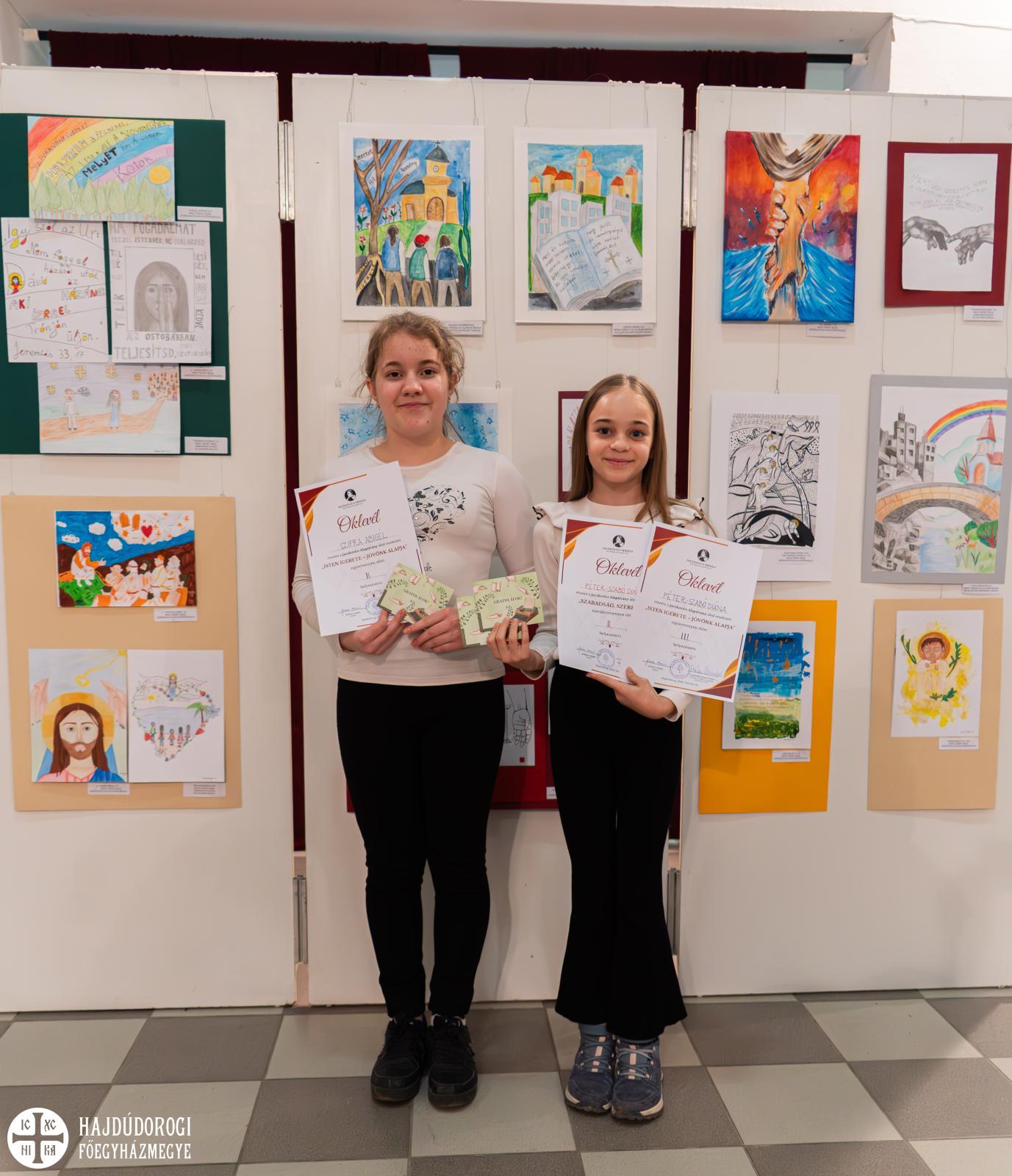 Kazai Gabriella és Major Gréta, Nagy Szent Bazil Görögkatolikus Gimnázium, felkészítő tanáruk Monostory Viktória művésztanárnő.